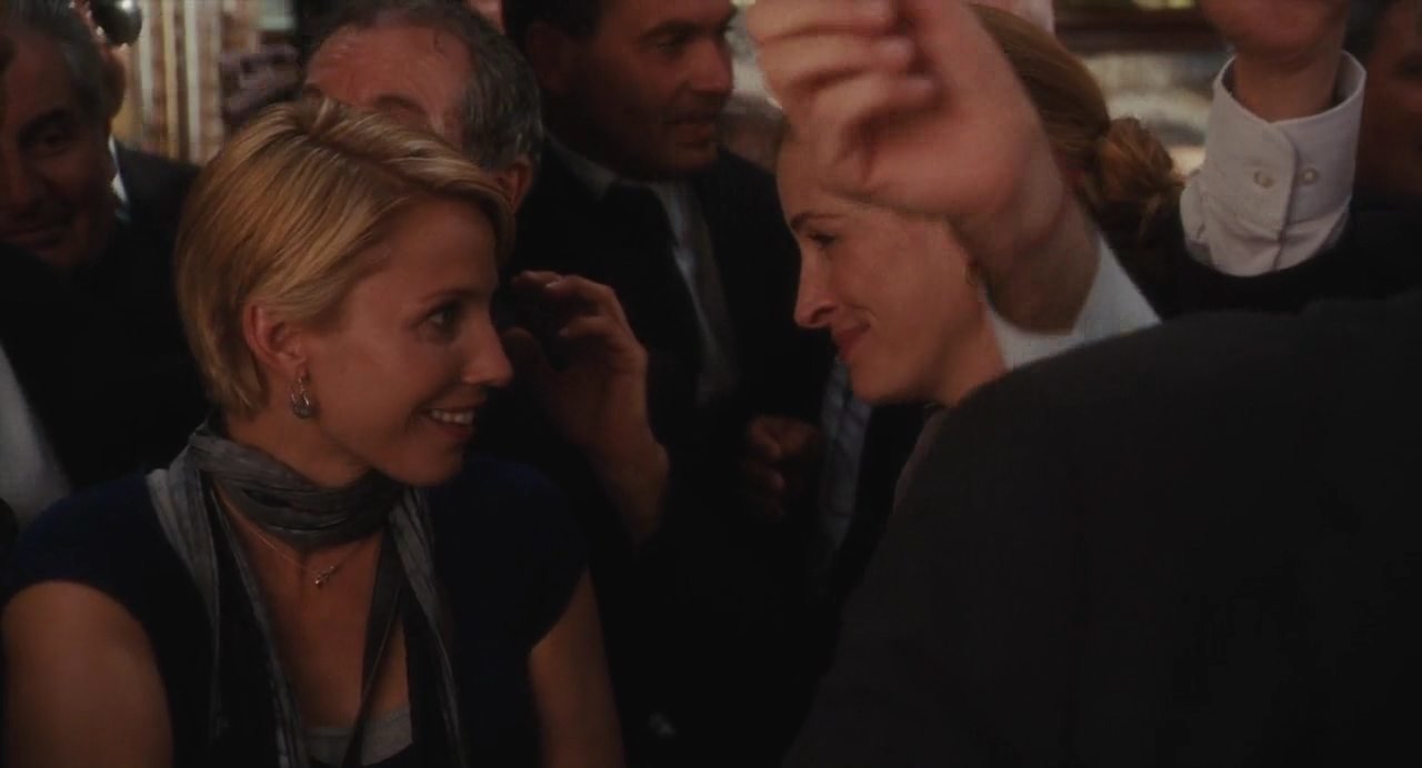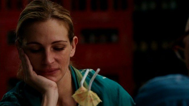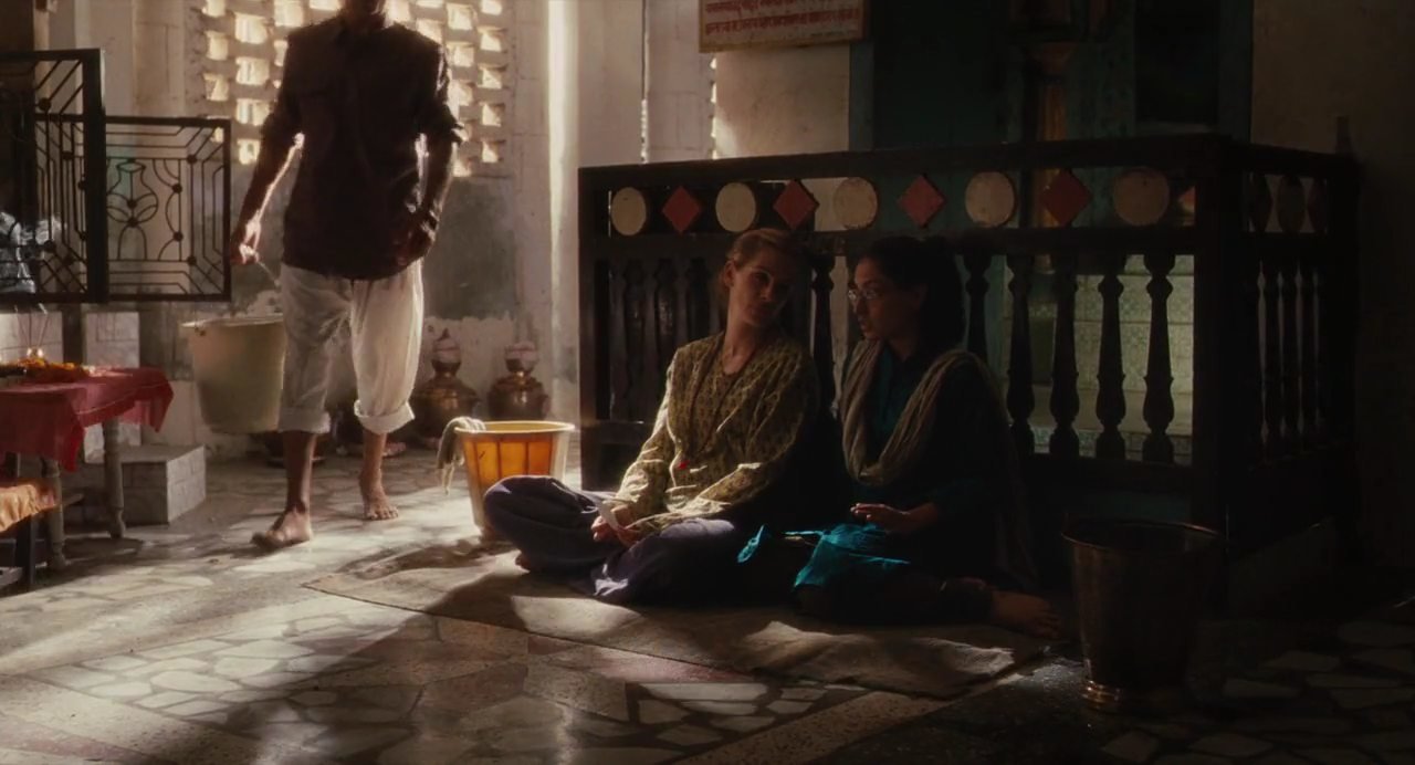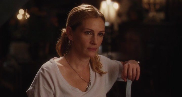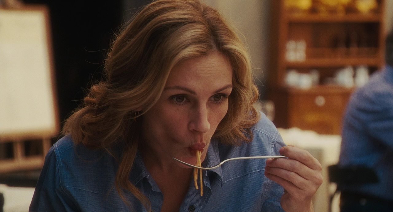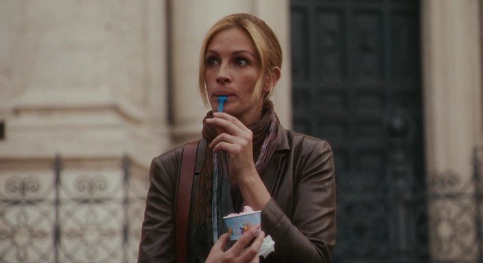 Название фильма озвучивает проблему человечества, заключенного в правила большого города: престижная фигура, престижная работа, престижный муж. К любви, спокойствию и радости жизни это не имеет никакого отношения. Поэтому успешные в глазах общества люди, однажды проснувшись, понимают - всё не так. Так и случилось с героиней Джулии Робертс - Элизабет. Почувствовав, что дальше так жить нельзя, она полностью разрывает все опостылевшие связи и уезжает. Заново знакомясь со вкусами, ощущениями и состояниями, принимая помощь и помогая другим, Элизабет находит себя, новый смысл жизни, новых друзей и свою любовь." ".