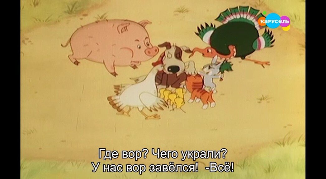 Музыкальный фильм-сказка для самых маленьких. Обитатели деревенского двора - котенок, пес и кролик в поисках "злодея", укравшего у них косточку , молоко и морковку, не заметили, как из детской считалки у них неожиданно сложилась "грозная" песенка.