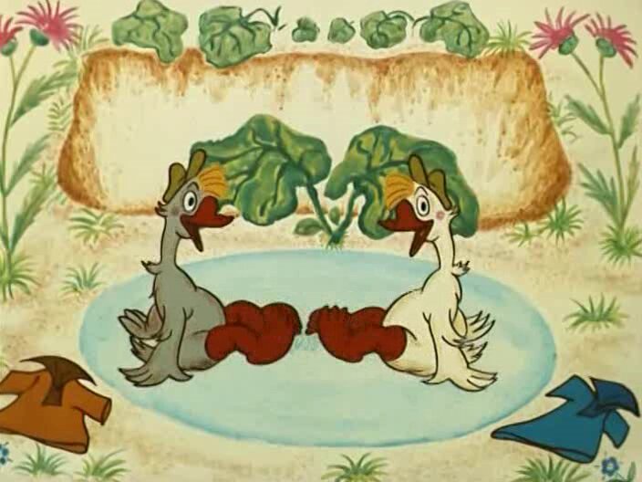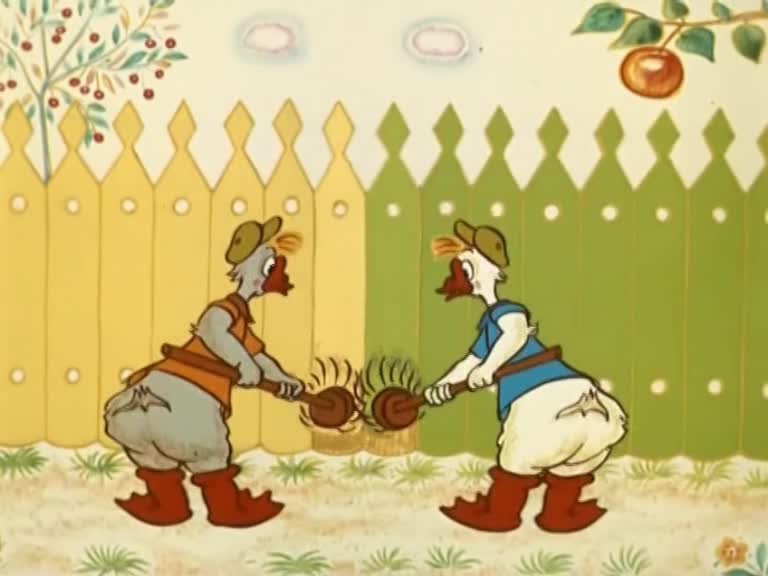 Сюжет из альманаха "Веселая карусель N 2". По русской шутливой песенке о бабусе и ее озорных гусях - сером и белом.