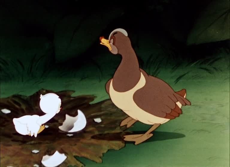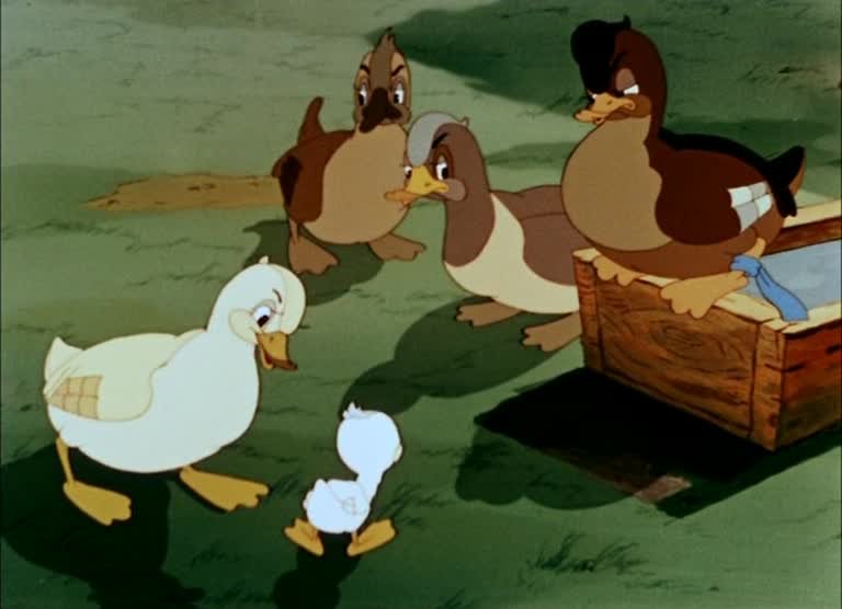 Картина рассказывает об утёнке, появившемся на свет неказистым и не похожим на других обитателей птичьего двора. Бедный утёнок подвергается насмешкам и незаслуженным издевательствам. Всё меняется с наступлением осени...