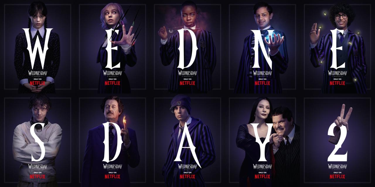 Персонажные постеры с героями второго сезона сериала «Уэнздей».